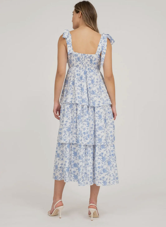 Floral Tie Strap Ruffle Tiered Midi Dress