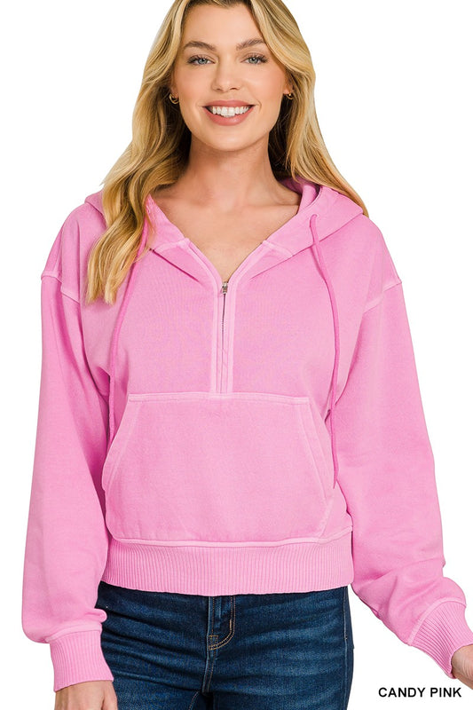 Pink Half Zip Fleece Hoodie