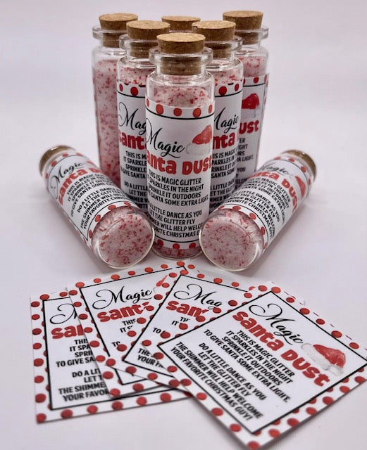 Sprinkle some magic this Christmas! Our Magic Santa Dust is a fun way to get the kids excited for Santa to visit! It will come in a 10 ml glass container with a cork top!