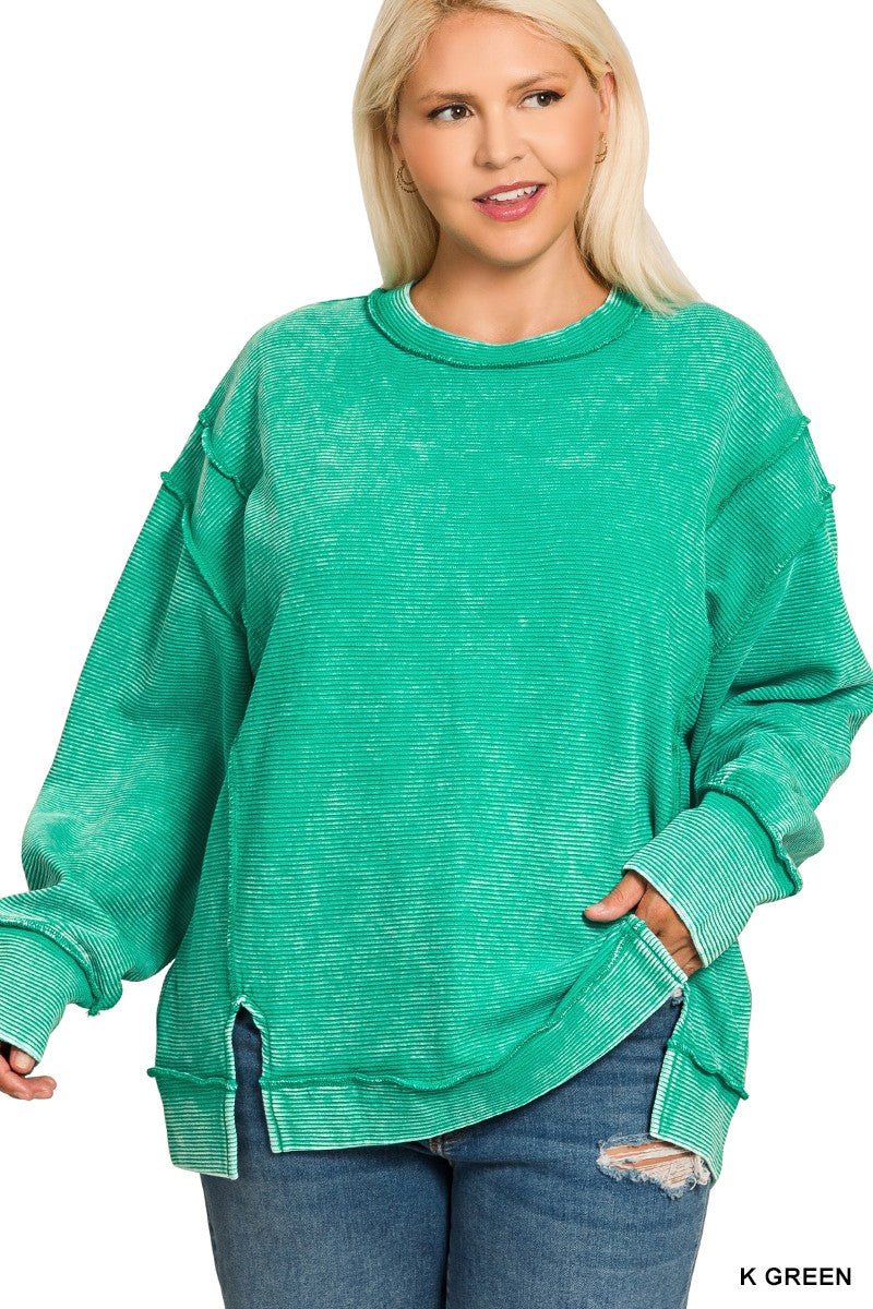 ACID WASHED DOUBLE RIBBED EXPOSED-SEAM PULLOVER